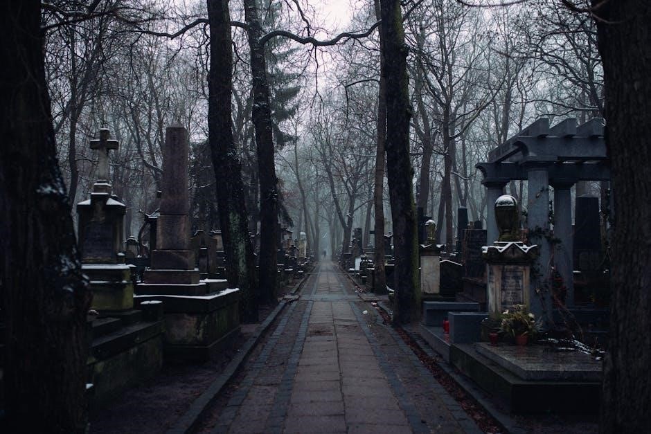 Analysis PDFs frequently delve into Dickinson’s subtle exploration of immortality and the afterlife within the poem. The journey in the carriage isn’t simply towards death‚ but towards a different realm of existence‚ hinted at through the passing scenes of life. The “House with the Swelling Roof” is widely interpreted as the speaker’s grave‚ yet also a symbolic representation of eternity.